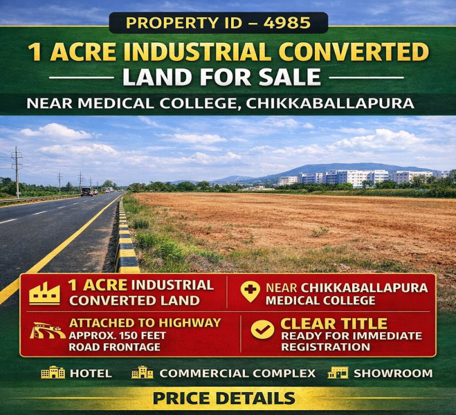 Located in the serene and picturesque neighborhood of Manchenahalli in ChikBallapur, this expansive 1-acre residential plot is now available for resale. Offering a rare opportunity to build your dream home in a tranquil setting, this property is perfect for those seeking a peaceful retreat away from the hustle and bustle of city life.